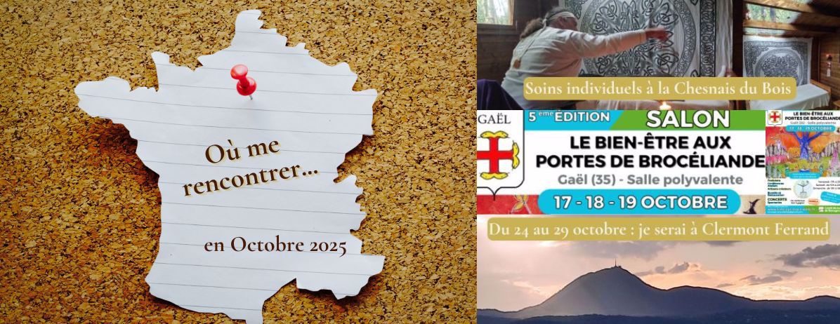 Toutes ces cérémonies sont également réalisables, selon les mêmes modalités, à mon espace, à la Chesnais du Bois, Mernel (35) ou au magasin Biocoop La graine des Dômes, à Lempdes (63), lors de mes déplacements en Auvergne !
